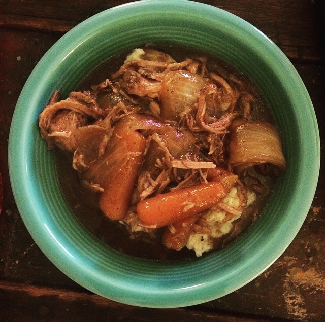 Yesterday morning I put a roast in the crockpot with baby carrots and chunks of onion. When I got home last night, the roast was so tender it fell apart, and the carrots and onion were caramelized.